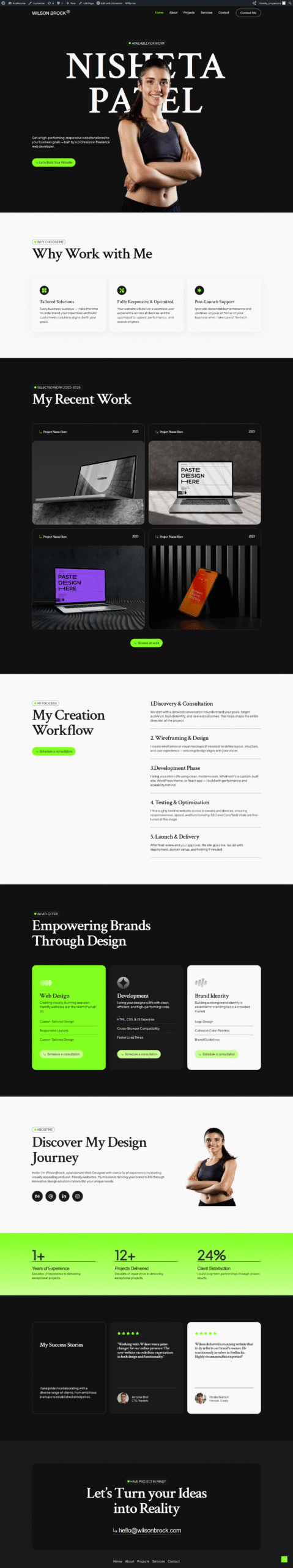 I had the pleasure of working with Sania on my personal portfolio website, and I couldn’t be happier with the result. She combined a great eye for design with solid technical skills to create a site that is both visually appealing and highly functional. Throughout the project, she communicated clearly and brought creative ideas that made the final product even better than I envisioned. Her attention to detail and ability to translate requirements into a clean, user-friendly experience are truly impressive. I wholeheartedly recommend Sania to anyone looking for a talented and reliable web designer/developer.